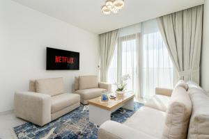 Apartmán Ahlan HH - Luxury 1BR v District One Residences 11 se nachází 7 km od Dubai Fountain a nabízí prostorný byt v Dubaji s plně vybaveným kuchyňským koutem a soukromým parkováním. Tento jednolůžkový apartmán má balkon a terasu s výhledem do zahrady, což vytváří příjemnou atmosféru pro odpočinek.