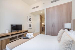 AirDXB - Chic Studio Apartment v Meydan s balkonem nabízí klimatizované ubytování v Dubaji, 10 km od The Dubai Fountain a Dubai Mall. Tento apartmán má jeden pokoj, vlastní parkování na místě, přístup k venkovnímu bazénu a výtah.