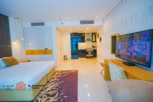 Al Ashrafia Saray - niezwykła kawalerka z widokiem na kanał oferuje klimatyzowane zakwaterowanie z widokiem na basen i patio, położone w Dubaju, zaledwie 1,5 km od fontanny Dubai Fountain oraz 1,8 km od centrum handlowego Dubai Mall. Apartament składa się z jednego pokoju i zapewnia wyjątkowe udogodnienia, takie jak zewnętrzny kominek oraz bezpłatny prywatny parking.