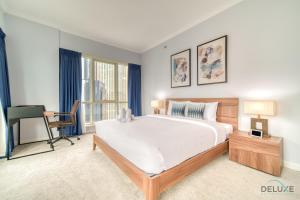 Apartmán Alluring 2BR v Al Majara 1 Dubai Marina od Deluxe Holiday Homes se nachází v Dubai Marina a nabízí prostorný byt se dvěma ložnicemi a dvěma koupelnami. Je situován jen pár kroků od pláže Marina Beach a pouhých 600 metrů od The Walk at JBR. K dispozici je bezplatné soukromé parkování a z balkonu se otevírá výhled.