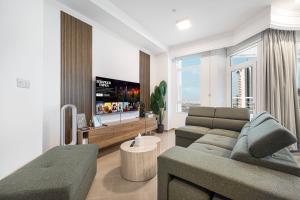 Offrant une piscine privée et une vue sur la mer, Amazing Palm View - Emplacement de premier choix - Spacieux est situé dans le quartier de Dubai Marina à Dubaï. Cet appartement spacieux comprend 1 pièce avec 2 chambres et 3 salles de bains, agrémenté d’un coin cuisine entièrement équipé et climatisation.