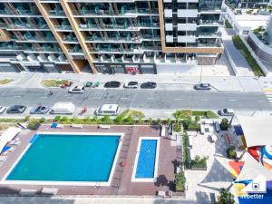 Для гостей доступны круглогодичные открытые бассейны и фитнес-центр. Обслуживание включает круглосуточную работу стойки консьержа и охраняемый частный вход под круглосуточной охраной. Бесплатная парковка на территории обеспечена, безопасность дополнительно поддерживается детекторами дыма и угарного газа. На балконе установлена уличная мебель с видом на бассейн, также имеется общая детская площадка.