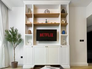 Plně vybavený kuchyňský kout obsahuje troubu, varnou desku, mikrovlnnou troubu, lednici, myčku nádobí, toustovač kávovar elektrický rychlovarnou konvici čajové potřeby sušičku prádla dětskou jídelní židličku jídelní stůl kuchyňské nádobí sušák na prádlo pračku i jídelní prostor vhodný pro pokrmy při výhledu na panorama města. K dispozici jsou rovněž zábavní možnosti jako jsou televize s plochou obrazovkou satelitní kanály streamovací služby zásuvky u postele Wi-Fi ve všech prostorách internetový přístup adaptér do zásuvky ochranné kryty fitness centrum dětský bazén venkovní vyhřívaný bazén soukromá pláž parkování přímo v objektu bezbariérové parkoviště nabíjecí stanice pro elektromobily úschovna zavazadel detektory kouře hasicí přístroje výtah obchod poblíž pohodlná posezení recepce otevřená nonstop kyvadlová doprava vyzvednutí z letiště transfery placené aktivity.