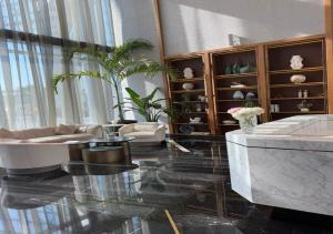 El apartamento Aykon city 2BHK con vista a la playa y a la ciudad, ubicado en Dubái, ofrece alojamiento con aire acondicionado y piscina privada. Se encuentra a solo 4,5 km del Burj Khalifa y a 5,4 km del Dubai Mall. Esta espaciosa propiedad cuenta con una habitación y ofrece impresionantes vistas al jardín y al mar desde su balcón, patio y terraza.