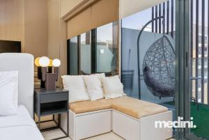 Azizi Riviera - 12 Minuten vom Stadtzentrum entfernt ist eine klimatisierte Wohnung in Dubai mit eigenem Pool und kostenfreiem WLAN. Diese Unterkunft mit einem Zimmer verfügt über einen Balkon und bietet kostenlose Privatparkplätze. Die Lage ist nur 11 km vom Dubai Fountain entfernt.