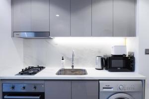 В апартаментах одна спальня с одной кроватью, ванная комната с душем, биде и туалетом, предоставляются бесплатные туалетные принадлежности, включая шампунь и кондиционер для волос. Мини-кухня полностью оборудована посудомоечной машиной, микроволновой печью, тостером, электрическим чайником и кухонной утварью. Дополнительные удобства включают кондиционер, отопление, гладильные принадлежности, шкаф для одежды и стиральную машину.