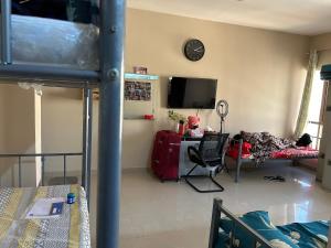 El apartamento incluye un dormitorio amueblado con cuatro camas y un baño equipado con todas las comodidades necesarias. Los huéspedes pueden disfrutar también de servicios adicionales como lavadora y aire acondicionado para mejorar su estancia.
