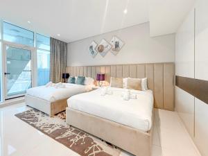 Featuring a balcony with river and garden views, the Bay's Edge, Luxury Canal View 2BR in Business Bay apartment is located in Dubai just 1.8 km from Burj Khalifa and 1.9 km from the Dubai Fountain. This spacious accommodation includes one room with two bedrooms and offers a unique blend of luxury amenities such as a year-round outdoor pool, sauna, and hot tub.