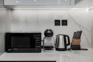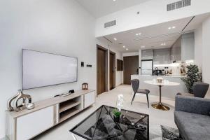 Located in Dubai, the 1bdr Yacht view Binghatti canal apartment features a private pool and offers free WiFi throughout the property. This one-room accommodation includes a balcony with views and provides free private parking for guests.