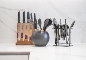 All'interno dell'appartamento gli ospiti possono usufruire di un angolo cottura completamente attrezzato con forno, piano cottura, frigorifero, microonde, macchina per il caffè e utensili da cucina per la comodità dei pasti. L'area soggiorno è dotata di TV a schermo piatto e posti a sedere tra cui un divano letto. Tra i comfort aggiuntivi vi sono aria condizionata, biancheria da letto, asciugamani, ferro da stiro con asse da stiro, cassaforte e lavatrice.