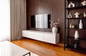 Дополнительные удобства включают Wi-Fi по всей территории апартаментов и телевизор с плоским экраном для развлечений. Практичные элементы — утюг с гладильной доской, пресс для брюк, стиральная машина с функцией сушилки одежды, шкафы для одежды плюс детская кроватка. В здании имеется лифт до верхних этажей, весь комплекс адаптирован для инвалидных колясок. Бесплатная парковка включает зарядные станции для электромобилей, меры безопасности представлены дымовыми датчиками и сигнализациями угарного газа.