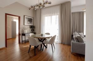 Внутри апартаментов есть отдельный вход, кондиционированная гостиная комната и одна отдельная спальня с двумя кроватями. В распоряжении гостей две ванные комнаты с ваннами, душевыми кабинами, гидромассажными ваннами и биде для дополнительного комфорта. Полностью оборудованная кухня оснащена современной техникой: плитой, холодильником, посудомоечной машиной, духовкой, микроволновкой, кофемашиной, электрическим чайником и тостером вместе с полным набором кухонной утвари.