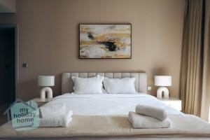 Apartmán Beautiful 1BR v Emaar Beachfront s přístupem na soukromou pláž a balkonem s výhledem na jezero se nachází v Dubaji, pouhých 1,3 km od City Walk Mall a 1,9 km od Burdž Chalífy. Tento apartmán nabízí jednu ložnici pro pohodlný pobyt.