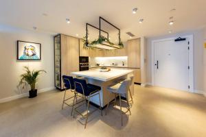 Ubytování zahrnuje dvě ložnice se dvěma lůžky a plně vybavenou kuchyň s troubou, varnou deskou, mikrovlnnou troubou a lednicí. K dispozici jsou také dvě koupelny s fénem a tekutým mýdlem na tělo. Další vybavení zahrnuje klimatizaci, povlečení, ručníky, žehličku, pračku a televizor s plochou obrazovkou.