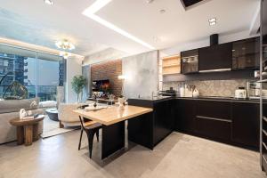 El apartamento cuenta con un dormitorio y dos baños equipados con secador de pelo y artículos de aseo gratuitos. Los huéspedes disponen de una cocina americana totalmente equipada que incluye horno, placa vitrocerámica, nevera, microondas y cafetera/tetera junto con una mesa para comer. Entre las comodidades adicionales se encuentran aire acondicionado, ropa de cama, plancha con tabla para planchar, armario empotrado, lavadora, cuna para bebé y televisión.