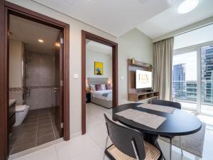 El apartamento Business Bay Bliss de 1 dormitorio con vista al canal cuenta con piscina privada y balcón con vistas al canal, ubicado en Dubái, a solo 2 km de la Fuente de Dubái y a 2,7 km del Burj Khalifa. Este alojamiento climatizado dispone de una habitación equipada con comodidades modernas para mayor confort.