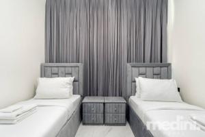 Apartmán 2 ložnice s vlastním bazénem - Samana Golf Avenue - Dubaj nabízí soukromý bazén a nachází se v Dubaji. Tento klimatizovaný apartmán má dvě ložnice, dvě koupelny a terasu pro odpočinek venku. K dispozici je bezplatné WiFi i bezplatné soukromé parkování na místě.