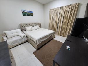 Tento klimatizovaný 1pokojový byt s vlastními bazénem a výhledem do zahrady se nachází v Dubaji, pouhých 6,7 km od Gurunanak Darbar Sikh Temple. Prostorný byt nabízí jednu místnost se dvěma postelemi a bezplatné Wi-Fi připojení i parkování na místě bez dalších poplatků.