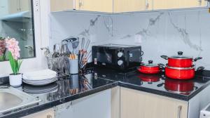 Apartament 1BHK Holiday Location w Dubaju, położony zaledwie 1,9 km od Wielkiego Meczetu, oferuje widok na morze oraz bezpłatny prywatny parking. To jednopokojowe mieszkanie posiada balkon z widokiem na ogród, zapewniając gościom spokojną przestrzeń na świeżym powietrzu.