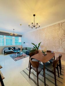 L'appartamento condiviso con 3 camere da letto a JBR Dubai si trova nel quartiere Dubai Marina e dispone di piscina privata e sauna, oltre a WiFi gratuito e parcheggio privato. L'appartamento comprende quattro stanze e offre una vista dal balcone. È situato a meno di 1 km dalla Hidden Beach e a soli 12 minuti a piedi da The Walk at JBR.