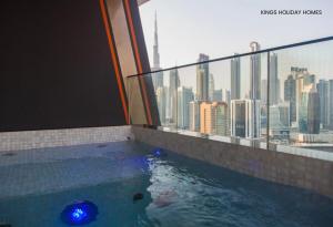 Binghatti Canal with Private Jacuzzi Burj Khalifa View Kings se nachází v Dubaji a nabízí soukromý bazén a vířivku. Tento klimatizovaný apartmán s jednou prostornou ložnicí nabízí úchvatný výhled na moře z balkonu a terasy, doplněný pohledem do zahrady. K dispozici je také bezplatné soukromé parkování.