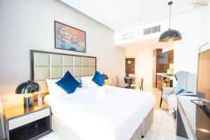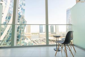 Das klimatisierte Apartment „Bnbeyond's Artsy Canal-View Studio im Herzen von BBay“ in Dubai verfügt über einen Balkon und einen eigenen Swimmingpool. Das Apartment besteht aus einem Zimmer mit einer voll ausgestatteten Küchenzeile und bietet Blick auf den Kanal.