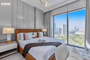 Apartament bnbmehomes - Downtown Views II w Dubaju to przestronne mieszkanie z czterema sypialniami, oferujące widok na miasto oraz dostęp do odkrytego basenu. Położony zaledwie 1,1 km od Dubai Mall i 1,4 km od Burj Khalifa, obiekt zapewnia bezpłatny prywatny parking oraz klimatyzację dla komfortowego pobytu.