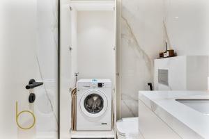 Im Inneren bietet die Wohnung zwei Betten in den Schlafzimmern sowie drei private Badezimmer mit Badewannen oder Duschen. Kostenfreie Pflegeprodukte wie Shampoo und Conditioner sind vorhanden. Zur weiteren Ausstattung gehören Bidet, Bademäntel, Haartrockner sowie Toilettenanlagen. Für zusätzlichen Komfort sorgen Klimaanlage und Heizung im gesamten Apartment sowie schallisolierte Räume mit Teppichböden für mehr Ruhe.