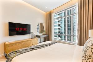 Im Zentrum von Dubai gelegen, bietet die buchbare Unterkunft „2 bed Lofts West with Sauna & Squash court“ eine einzigartige Kombination aus Wellness- und Sporteinrichtungen, darunter ein Außenpool, eine Sauna und ein Squashcourt. Die großzügige Wohnung verfügt über zwei Schlafzimmer und drei Badezimmer sowie einen Balkon mit Stadtblick.