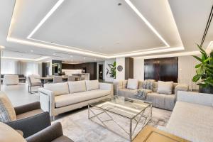 Este amplio ático con aire acondicionado y balcón ofrece vistas a la ciudad y está ubicado en Dubái. Cuenta con una entrada privada y seguridad las 24 horas para mayor privacidad. Los huéspedes pueden disfrutar de comodidades únicas como jacuzzi, sauna y piscina exterior.