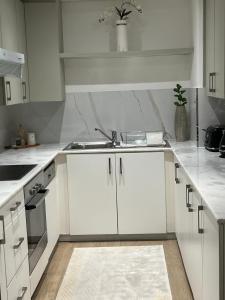 L’appartement se compose d’une chambre et d’un salon aménagé avec un canapé et un coin salon. Il dispose également d’un coin cuisine équipé comprenant four, plaque de cuisson, réfrigérateur, lave-vaisselle et grille-pain ainsi qu’un espace repas. La salle de bains propose douche et baignoire ainsi qu’un sèche-cheveux.