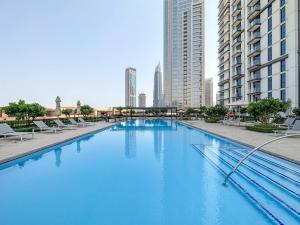 El apartamento Burj Crown en la planta 39, con 2 dormitorios y vistas al Burj Khalifa y a la fuente, ofrece una impresionante piscina infinita y jardín. Situado en el centro de Dubái, está a pocos pasos del Burj Khalifa y del Dubai Mall. Este espacioso alojamiento cuenta con dos habitaciones que ofrecen vistas impresionantes del skyline de la ciudad.