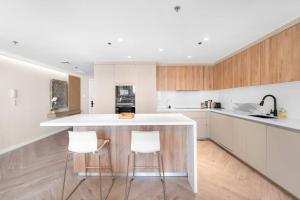 Das geräumige Apartment umfasst zwei separate Schlafzimmer und zwei Badezimmer mit Duschen und Haartrocknern. Die voll ausgestattete Küche verfügt über einen Backofen, Herdplatte, Kühlschrank, Mikrowelle, Toaster, Geschirrspüler, Wasserkocher sowie einen Esstisch für eine komfortable Essenszubereitung. Weitere Zimmerausstattungen umfassen einen Flachbildfernseher, Schlafsofa, Schreibtisch, Bügeleisen mit Bügelbrett, Waschmaschine und Safe.