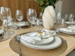 The air-conditioned villa comprises three bedrooms, four bathrooms equipped with bidets and hair dryers, as well as a living room featuring a sofa bed and flat-screen TV. A fully equipped kitchen comes complete with an oven, stovetop, refrigerator, microwave, coffee machine, toaster, electric kettle and all necessary kitchenware. Additional in-room amenities include air conditioning, a work desk, wardrobe closet, clothes drying rack, safety deposit box, iron and washing machine.