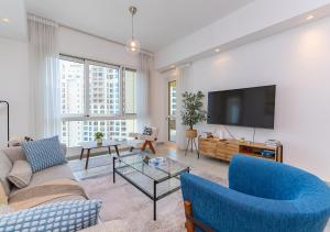 Апартаменты 2BR Modern - Marina Residence 5-Palm View в Дубае с кондиционированием воздуха и собственным бассейном предлагают захватывающий вид на море и балкон. Этот пляжный объект располагает одной просторной комнатой, бесплатной частной парковкой и бесплатным Wi-Fi на всей территории.