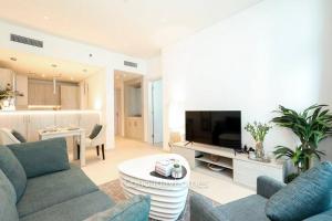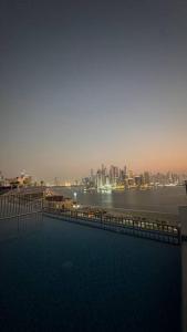 Situato a Dubai, a soli 400 metri da Palm West Beach, l'appartamento con 1 camera da letto, piscina infinity sul tetto e campo da padel offre una vista mare e piscina. Questa proprietà fronte mare dispone di un parcheggio privato gratuito e WiFi incluso.