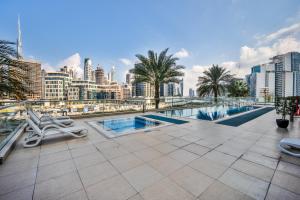 Apartmán 1BR Stunning Canal & Burj view, Luxury Stay at Fairview Residency v Dubaji nabízí terasu s výhledem na bazén a řeku. Tento apartmán s jednou ložnicí má výhled na jezero. Nachází se jen 4,3 km od Dubai Fountain a 5 km od Burj Khalifa, ubytování zahrnuje bezplatné soukromé parkování a WiFi zdarma.