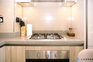 Wnętrze apartamentu obejmuje dwie sypialnie oraz jedną łazienkę wyposażoną w prysznic, bidet, suszarkę do włosów, szampon, odżywkę, mydło do ciała i toaletę. W pełni wyposażony aneks kuchenny zawiera płytę grzejną, piekarnik, lodówkę, toster, ekspres do kawy oraz czajnik elektryczny wraz ze sprzętem kuchennym ułatwiającym spożywanie posiłków. Dodatkowe udogodnienia to ogrzewanie i klimatyzacja oraz urządzenia do prasowania (żelazko i suszarka na ubrania), sejf, garderoba lub szafa oraz pralka dostępna dla gości.