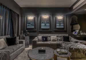 Внутри апартаментов установлена система кондиционирования воздуха по всей площади. Полностью оборудованная мини-кухня включает духовку, микроволновую печь, плиту, холодильник, кофемашину и тостер, а также принадлежности для приготовления чая и кофе. Гостиная зона оснащена удобными местами для сидения — диваном-кроватью и телевизором с плоским экраном вместе с игровой консолью. Дополнительные удобства включают гладильные принадлежности (утюг и гладильную доску), стиральную машину, сушилку для одежды, шкаф с пуховыми подушками и розетки у кровати.