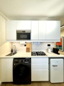 Le logement dispose d’une chambre avec un lit unique, complétée par un coin cuisine entièrement équipé comprenant une plaque de cuisson, un micro-ondes, un réfrigérateur, un sèche-linge pour vêtements ainsi que des installations pour préparer thé et café. La salle de bains est munie d’une baignoire, d’un sèche-cheveux, de shampooing et de savon corporel. Parmi les équipements en chambre figurent également un fer à repasser, une machine à laver, un bureau de travail, le chauffage ainsi que des oreillers synthétiques non duvetés accompagnés de serviettes et linge de lit.