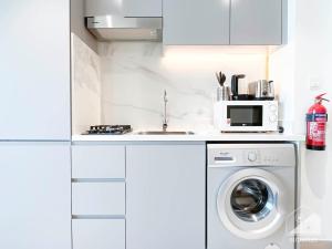 Cet appartement climatisé comporte une chambre et une salle de bains équipée avec savon corporel, shampoing, sèche-cheveux, toilettes et douche. Les draps et serviettes sont fournis ainsi que le chauffage et un fer à repasser pour plus de confort. Vous disposerez aussi d’un coin salon ainsi que d’une machine à laver.
