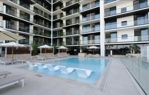 Jasna i nowoczesna kawalerka z 1 sypialnią w JVC z prywatnym basenem i bezpłatnym parkingiem położona jest w Dubaju, zaledwie 8,3 km od toru wyścigowego Dubai Autodrome. Apartament oferuje klimatyzowany pokój oraz dostęp do balkonu.