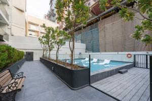 Situé à Dubaï, l'appartement lumineux et neuf de 2 chambres à coucher dans Jumeirah Village Circle offre un grand espace avec une piscine privée et une connexion Wi-Fi gratuite. Cette résidence non-fumeurs dispose d'une chambre donnant sur le jardin depuis son balcon et inclut un parking privé gratuit pour les clients motorisés.