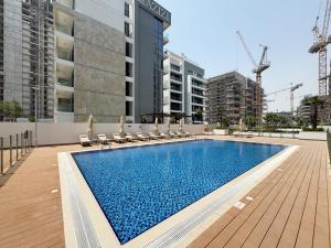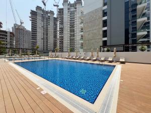 Studio lumineux et élégant à Meydan Azizi Riviera, cet appartement climatisé à Dubaï dispose d'une piscine privée et d'une connexion Wi-Fi gratuite. Ce logement d’une pièce comprend un balcon et offre un parking privé gratuit, assurant un confort optimal aux visiteurs. Situé à environ 10 km de la Fontaine de Dubaï et du Dubai Mall, il constitue une base idéale avec des équipements modernes.