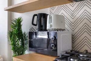 El apartamento cuenta con una cama, cocina americana completamente equipada para cocinar y almacenar alimentos, además de un baño. Los huéspedes pueden disfrutar de comodidades dentro del alojamiento como aire acondicionado, lavadora y televisión pantalla plana.