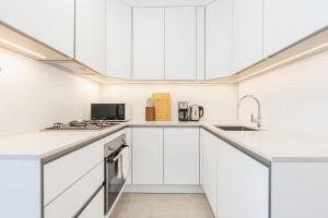 Guests benefit from free WiFi throughout the apartment alongside entertainment via flat-screen television. Services include a 24-hour front desk with concierge assistance plus express check-in/check-out options. The building provides lift access to upper floors including this unit’s private entrance along with smoke detectors and carbon monoxide detectors for safety.