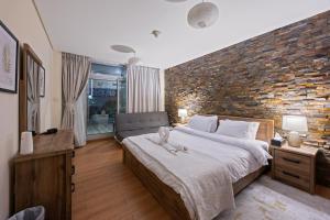 Located just steps away from The Dubai Fountain and Dubai Mall, Burj Khalifa View, Downtown Dubai, The Burj Loft is a spacious apartment featuring free WiFi and air conditioning. This one-room property offers city views from its balcony and includes household amenities such as a microwave and kettle. Private parking can be arranged for an additional charge.