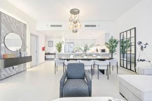 Burj Khalifa View and Dubai Mall Walk - 4 ložnice, 14 hostů je prostorný apartmán v centru Dubaje s bezplatným Wi-Fi a venkovním bazénem. Tento ubytovací prostor zahrnuje čtyři ložnice a tři koupelny a nabízí výhled na město z balkonu. Nachází se méně než 1 km od ikonické Burj Khalify a pouhých 1,5 km od nákupního centra Dubai Mall.