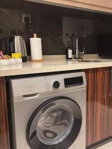 El apartamento dispone de un dormitorio con aire acondicionado y un baño equipado con artículos de aseo gratuitos, bañera, ducha, jabón corporal, champú, acondicionador, secador de pelo, jacuzzi privado y sauna privada. La cocina americana completamente equipada incluye horno, placa de cocina, frigorífico, microondas, tostadora, hervidor eléctrico y todo el menaje necesario junto con una mesa para comer.