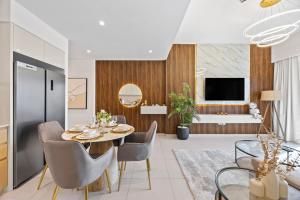 Apartament Burj Royale z zachwycającym widokiem na Burj i fontannę, położony w centrum Dubaju, mniej niż 1 km od The Dubai Fountain. Ta jednopokojowa nieruchomość oferuje imponujące widoki, balkon oraz klimatyzację, a także bezpłatne WiFi i telewizor z płaskim ekranem.
